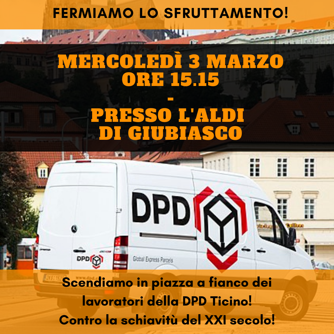 La DPD Ticino ha triplicato il numero di autisti in tre anni, la cifra d’affari è quindi cresciuta di molto, ma i salari e le condizioni di lavoro non hanno fatto che peggiorare. Costantemente geolocalizzati, gli impiegati DPD si vedono sottrarre le ore di lavoro se, in base alle statistiche, hanno consegnato meno pacchi degli obiettivi fissati, con un sistema di premi per i migliori e di malus per i peggiori. A niente serve il CCL di categoria, che è stato disdetto oltretutto, perché sottopone solo i dipendenti direttamente assunti da DPD, ma DPD non assume nessun autista, perché subappalta a ditte terza il lavoro. Solo un protagonismo operaio potrà permettere di migliorare le condizioni. La logica anti-sindacale di questo modo di pagamento deve essere combattuta con forza da tutti coloro che si dicono dal lato dei lavoratori e delle lavoratrici.