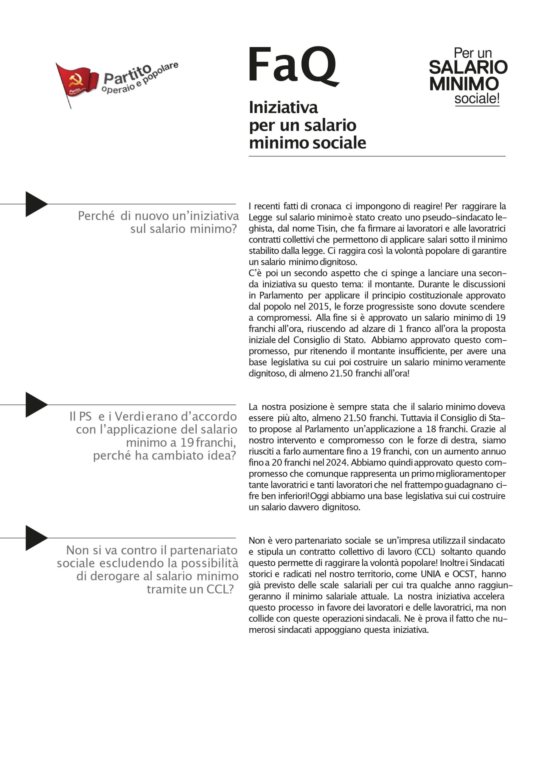 ll POP è promotore dell’iniziativa costituzionale per un salario minimo sociale.